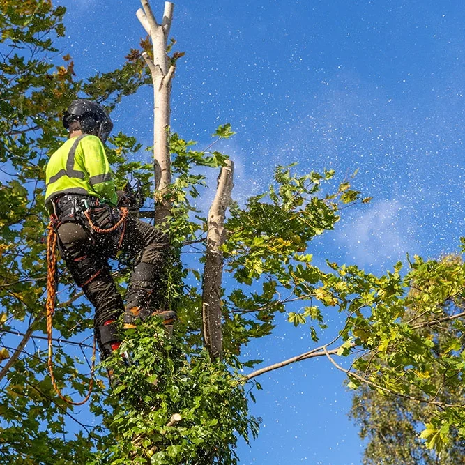 Tree felling services provided by experienced tree surgeons. Our professionals utilise their expertise to assess tree conditions, ensuring that felling is performed safely and efficiently when trees pose a risk to property or public safety.